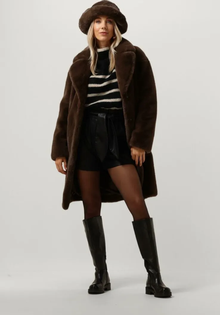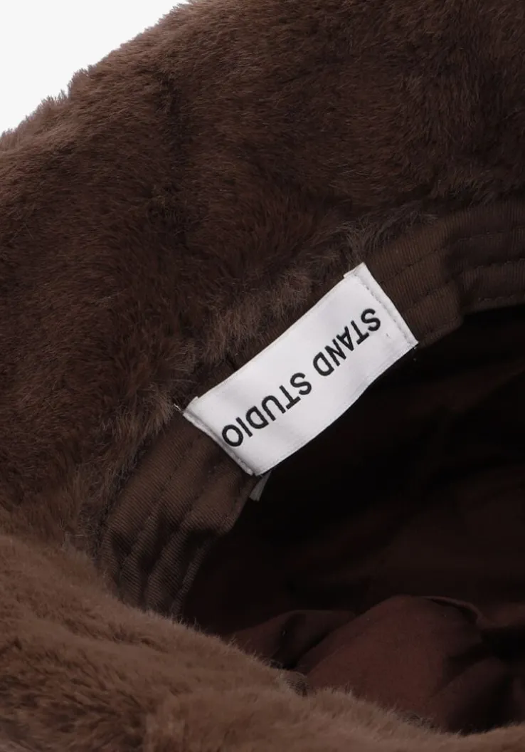Hoe fluffy is deze buckethat WERA BUCKET HAT van het merk STAND STUDIO! Het bovenwerk bestaat uit zacht faux fur in een bruine kleur en heeft een toffe uitstraling.