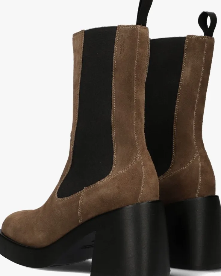 Het Zweedse merk VAGABOND is een diepgeworteld merk met veel passie en liefde voor het maken van schoenen. Door het vakmanschap, creativiteit en perfectionisme waarmee de schoenen worden gemaakt weten ze je keer op keer te verbazen met hoogwaardig mooi afgewerkte en vooral trendy schoenen. Deze bruine chelsea boot BROOKE CHELSEA is gemaakt van kwalitatief hoogwaardig suède met elastische zijpanelen en een grove blokhak. Door het moderne ontwerp valt dit laarsje extra op en is het een ware eyecatcher. Opvallende details zijnde dubbel gestikte naden, de carré neus en het aantreklusje achter op de schacht waarmee je ‘m gemakkelijk aan en uittrekt. Het binnenwerk heeft een voering van leer en textiel in combinatie met een vast dempend voetbed. De rubberen zool is onder de voorvoet 2,5 centimeter dik en heeft een blokhak van 8,5 centimeter hoog. De laars heeft een schachthoogte van 19centimeter, gemeten bij maat 37. Het gripvasteprofiel zorgt voor een stevige grip en stabiliteit. Draag dit laarsje chique onder een jeans of jurkje en geef je outfit een flinke boost!