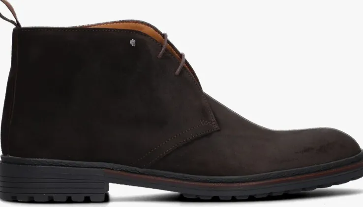 Uit de collectie van het Nederlandse merk Floris van Bommel is deze donkerbruine veterschoenen SBM-50007 van zacht suèdemet een rijke uitstraling. Het bovenwerk heeft een sierlijke afwerking aan de schacht dankzij de stiksels. De schoen is gevoerd met kalfsleer en voorzien van een niet uitneembaar voetbed.Dit model heeft een H-wijdte en een Blake-maakwijze, waarbij het bovenwerk over de binnenzool wordt getrokken en vastgezet. Vervolgens wordt de onderkant opgevuld met flexibel kurk en daar wordt onder hoge druk de zool op geperst. De rubberen loopzool is voorzien van een fijn profiel en zorgt voor een goede grip. Combineer deze eyecatcher onder een mooie jeans voor een sportieve, stijlvolle casual chiquelook