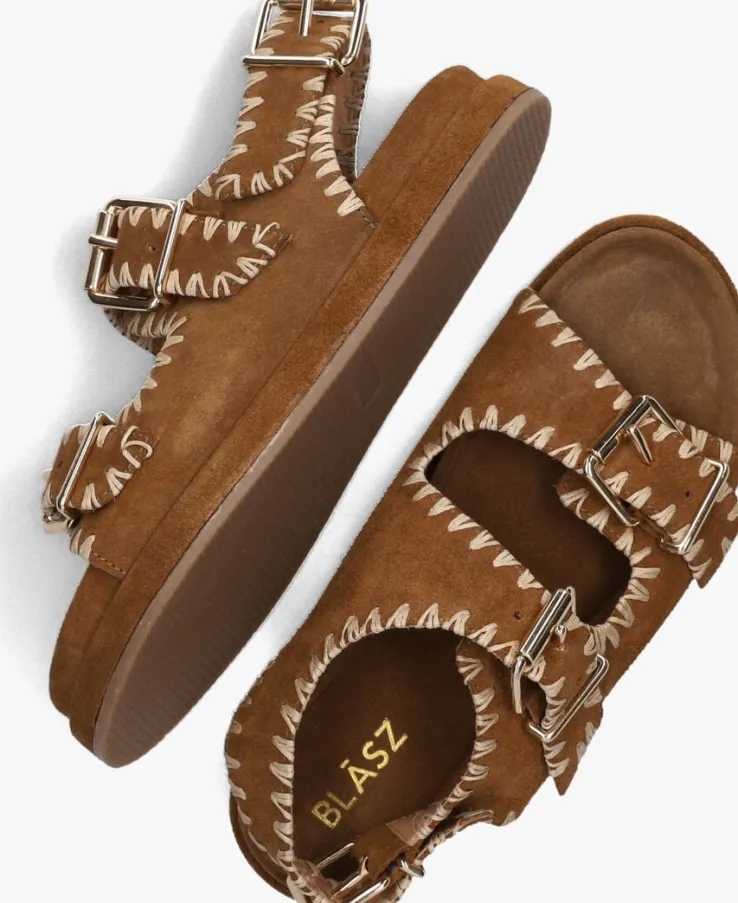 Stap in stijl met de LPMAG-15 sandalen van BLASZ! Deze camelkleurige sandalen zijn gemaakt van suède en zijn perfect voor een zomerse dag. Toffe details zijn de twee goudkleurige gespen op de bovenkant en de witte stiksels. Aan de achterkant is ook een bandje te vinden met een gespsluiting. De binnenvoering is gemaakt van leer en heeft een zacht dempend suéde voetbed. Combineer ze met een luchtige jurk voor een dagje strand of draag ze onder een trendy jumpsuit voor een avondje uit. De rubberen zool biedt grip en stabiliteit. Met deze sandalen ben je klaar voor elke gelegenheid. Laat je voeten stralen en geniet van het comfort en de stijl die deze schoenen bieden. Perfect voor dames die houden van fashion en comfort!