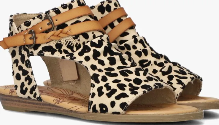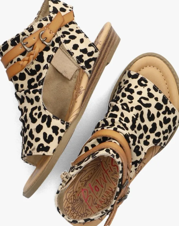Droom heerlijk weg met de zon op je gezicht en krijg het gevoel alsof je op eentropischstrand zit met deze té leuke sandalen BLUMOONvan het merk BLOWFISH aan je voeten. Dit leuke exemplaar is uitgevoerd in beige veganistisch suède met zwarte velvet panterprint. Extra leuk is de cut-out aan de zijkant en hiel en de cognackleurige bandjes met gespjes en gevlochten detail.De voering is gemaakt van heerlijk zacht textiel met zebraprint en het voetbed met roze metallic opdruk isgemaakt van vegan leer. Op de wreefbevindt zich een geborduurd merklogo.Een verantwoorde keuze waarmee je er ook nog eens superleuk uitziet! Aan- en uittrekken gaat heel gemakkelijk dankzij de ritssluiting aan de binnenzijde van de sandaal. De zool loopt naar achteren toe iets op en heeft een gelaagd houteffecten de rubberen loopzool met fijn profiel zorgt voor een goede grip.