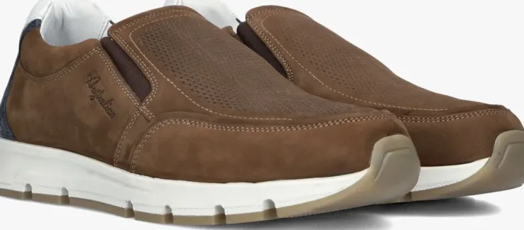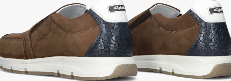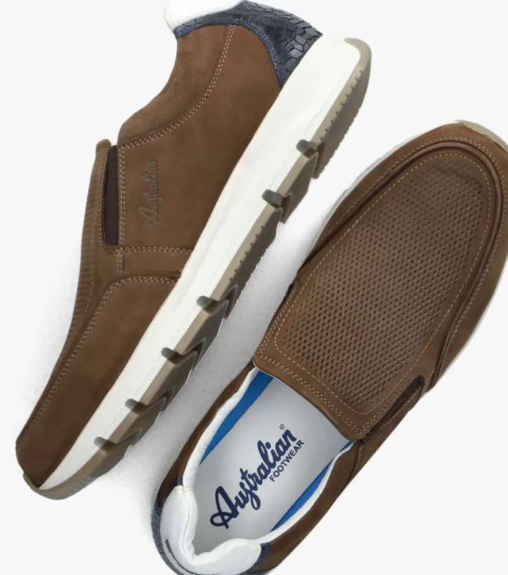 Stap in stijl met de EAGLE instappers van het merk AUSTRALIAN. Dit model is gemaakt van bruin nubuck en heeft een opstaande neusnaad met op de wreef kleine perforaties. Een leuk detail is het rubberen merkembleem met de witte hielkap en de donkerblauwe slangenprint op de hiel. Met bruine elastische inzet stap je gemakkelijk in de instappers met binnenwerk van leer en textiel. De rubberen zool met kartel profiel is onder de voorvoet 2 centimeter hoog en loopt naar achteren op tot 3,5 centimeter hoogte. Combineer ‘m onder een pantalon of slim fit jeans. Waar ga jij deze instappers bij dragen?