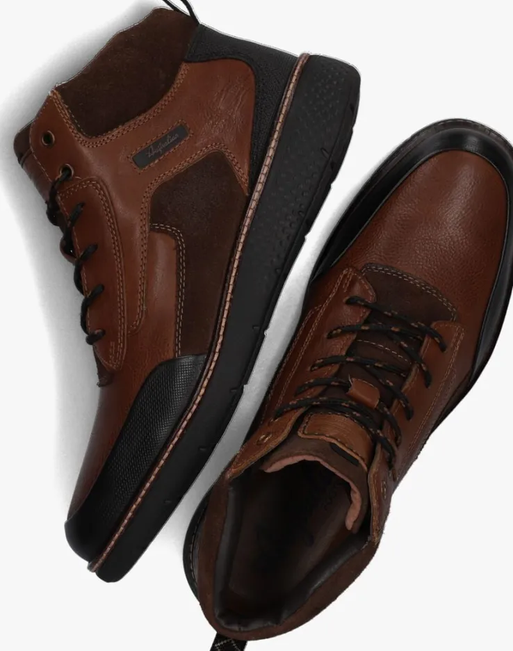 Stap stijlvol de dag in met de DURANGO veterboots van AUSTRALIAN. Deze cognackleurige herenschoenen zijn perfect voor elke gelegenheid. De schoenen hebben overlays effect van leer en suède, de schoenen zijn afgewerkt met dubbele stiksel van grijs en wit. Hielinzet beschermtde hiel tegen beschadigingen en geeft de schoen een mooie finishing touch. De ronde metalen veterringen, tweekleurige veters geeft de schoen een stoere look. Daarnaast trek je de schoen eenvoudig aan met de aantreklus van zwart en wit textiel. Op de tong zit een leren merklabel. Met hun trendy design en comfortabele pasvorm, zijn ze ideaal voor een casual dagje uit of een avondje stappen met vrienden. Combineer ze met een stoere jeans en een casual shirt voor een moeiteloze en trendy look. Of draag ze onder een nette broek en een overhemd voor een meer formele uitstraling. Met de DURANGO veterboots ben je altijd klaar om indruk te maken.