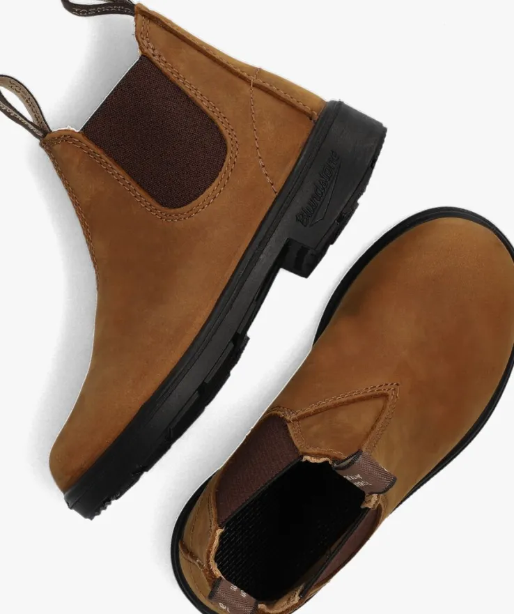 Ga op avontuur met de waterafstotende schoenen van het Australische merkBLUNDSTONE.Dit zijn niet zomaarschoenen, dit zijn BLUNDSTONES!Deze schoenen zorgen voor droge en comfortabele voeten de hele dag door. Ze zijn geïnspireerd op de mooie, maar ruige ondergronden van Tasmanië inAustralië en hebben een stijlvol, robuust uiterlijk door de twee elastieken aan de zijkant, waardoor ze een ruime instap hebben en een hoog loopcomfort bieden. Ze worden liefkozend ‘BLUNNIES’ genoemd en zijn te herkennen aan de ‘pull tags’ van textiel merklint op de voor-en achterkant. Dezecognackleurige chelsea boots 1563 zijn gemaakt van premium nubuckleer en hebben eenvoering van leer en textiel met een uitneembaar voetbed van geperforeerd textiel. Dit voetbed is orthopedischverantwoord en heeft een hoge dempende en absorberende werking voor opmerkelijk comfort. Er wordt een extra paar inlegzooltjes bijgeleverd, die je eenvoudig onder het orthopedische voetbed kunt plaatsen voor een meer aansluitende pasvorm. De zolen zijn licht en flexibel waardoor jeer heerlijk op loopt en mee kunt spelen. Het grove profiel zorgt voor een perfecte grip en de hak met reliëf merkopdruk geeft je een klein beetje extra lengte. De zool is 1,5 centimeter dik, de hak heeft een hoogte van 3 centimeter.Deze schoenen zijn gemaakt om lang mee te gaan, maar door ze goed te verzorgen blijven ze langer mooi en gaan ze nóg langer mee!