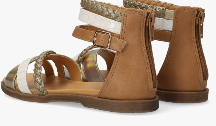 Deze fijnesandalenALM013F1Skomen uit de collectie van het merk BULLBOXER en geven jouw outfit een stoere touch. De buitenkant is gemaakt van cognac kleurig, goud, wit en holograficlederlooken is voorzien van tredy gevlochten bandjes én croco print. De bandjes aan de voet zijn gekruist en daardoor lekker speels. Je trekt ‘m super snel aan en uit door middel van de ritssluiting achterop de hiel. Het binnenwerk isgemaakt van lederlooken het voetbed voelt heel comfortabel aan. De rubberen zool heeft een fijn profiel en zorgt voor veel grip. Een fijn sandaaltje voor al die heerlijke zomerse dagen!