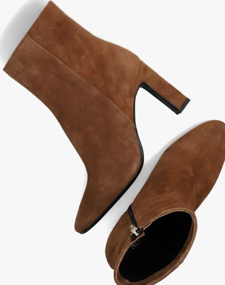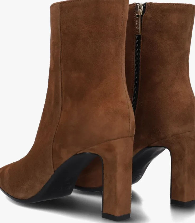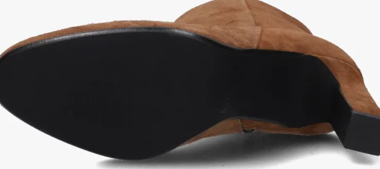 Ga voor een chique look met deze enkellaars 11236 van het toffe merkNOTRE-V!Dit modelheeft een bovenwerk van hoogwaardig suède in een mooie, cognackleurige kleur. De laars heefteen rechte schacht met een handige ritssluiting aan de binnenzijde om ‘m gemakkelijk aan en uit te trekken. Opvallend detail is de naar binnen gestikte naad aan de schacht en de goudkleurige ritshanger met merkreliëf. Verder heeft dit item een trendy neus met een smalle, beklede blokhak van zo’n 9 centimeter hoog. Het binnenwerk bestaat uit zacht leer in combinatie met leatherlook dat comfortabel aanvoelt aan je voeten en de schoen heeft een vast voetbed. De kunststof loopzool geeft de laars een mooi afgewerkt geheel en met het fijne lijntjesprofiel heb je een goede grip. Deschacht is 14 centimeter hoog, gemeten bij maat 38. Draag de schoenen elegant onder eenjurkje of stoer onder een jeans!