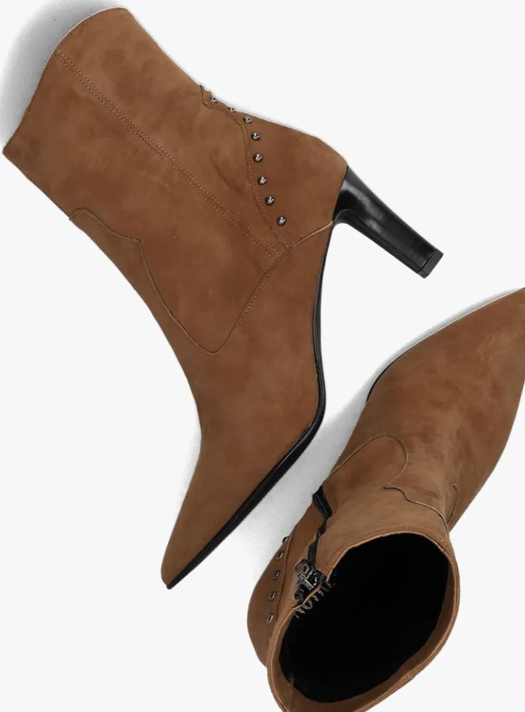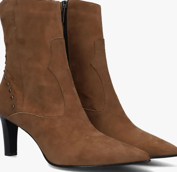 Deze enkellaars 38259 met cowboy-accenten komt uit de collectie van het mooie merk NOTRE-V. De elegante Italiaanse ontwerpen van het merk NOTRE-V zijn er voor de verfijnde vrouw die er graag effortless chic uit wil zien. De producten zijn gemaakt van luxe materialen met subtiele accenten en een knipoog naar de laatste trends.Dit model met slanke vormgeving is gemaakt van cognackleurig suède en heeft city western details zoals een puntige neus, het patroon op de schacht, de bollstuds op het hielstukje en de afgeronde schacht. Je trekt ‘m gemakkelijk aan dankzij de ritssluiting aan de binnenzijde. De voering is gemaakt van leer in combinatie met leatherlook en het dempende voetbed is niet uitneembaar. De gelaagde hak met houtlook heeft een hoogte van ruim 7,5 centimeter en de schachthoogte is 17 centimeter. De rubberen loopzool met zorgt voor voldoende grip, steun en stabiliteit! Combineer ‘m onder een zwierige jurk en steel de show!