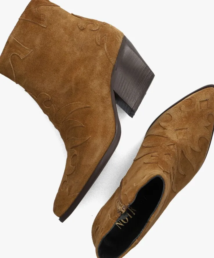 Een mooienkellaarsje isonmisbaar in je schoenenkast! Dit cognackleurige model AR196 met city western invloedenis van het merk NOTRE-Ven maakt al jouw outfits af! Het laarsje is gemaakt vanzacht suède en heeft eenbinnenwerk van leer met een vast voetbed met dempende schuimlaag. De schacht sluit mooi aan op de enkel en kan worden geopend met een handige rits. Dit laarsje heeft niet alleeneen prettig loopcomfort, maar benadrukt ook de stoerecowboy-look in jouw favoriete outfit, want de opgestikte patronen, de puntige neus en de gelaagde blokhak makenhet plaatje compleet.De hakhoogte is 7centimeter en deschachthoogte is 13centimeter, gemeten bij maat 37. Draag ‘m met een zwierige jurk of een stoere jeans!