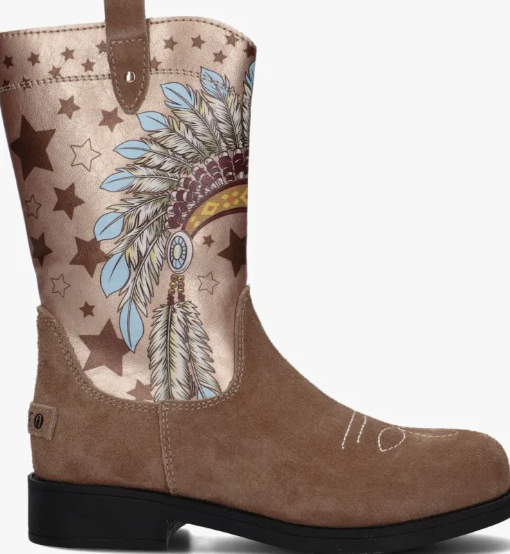 Deze cowboylaars van het merk SHOESME is een echte eye-catcher. De laars is gemaakt van beige suède en heeft een leren schacht met sterren en een indianen tooi. De laarzen zijn gemakkelijk aan te trekken en te sluiten met rits. De binnenkant is gemaakt van leer en heeft een uitneembaar voetbed. Op de achterzijde zit het zwarte merkembleem. Door de stevige zool van rubber biedt deze laars een ultiem draagcomfort. Combineer deze trendy laars met jouw favoriete outfit voor een unieke look.