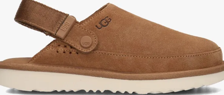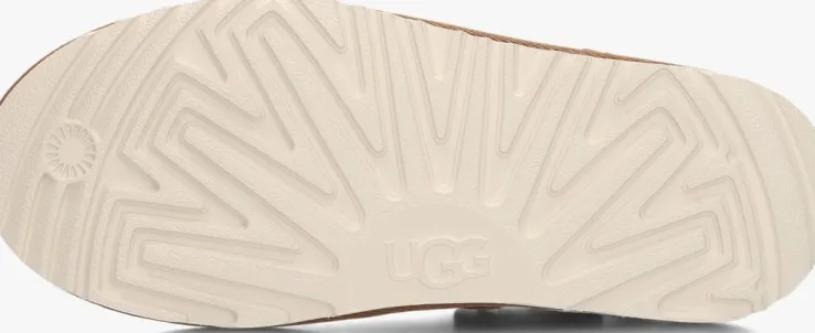 Stap in stijl en comfort met de K GOLDENSTAR CLOG pantoffels van UGG. Deze zachte pantoffels in de kleur cognac zijn perfect voor meisjes en jongens die op zoek zijn naar een trendy en gezellige look. Gemaakt van suède met een binnenwerk van zacht textiel, houden ze je voeten heerlijk warm en zacht. Het stikwerk en de bolle gestikte zoolrand met witte rubberen zool geeft de een speels effect. De pantoffels hebben een handige slip-on design met klitsluiting, waardoor ze ideaal zijn voor ontspannen momenten thuis of een gezellig pyjamafeestje. Combineer ze met een comfortabele pyjama of een relaxte lounge set voor een complete en relaxte outfit. Met de K GOLDENSTAR CLOG pantoffels van UGG ben je klaar om te ontspannen in stijl.
