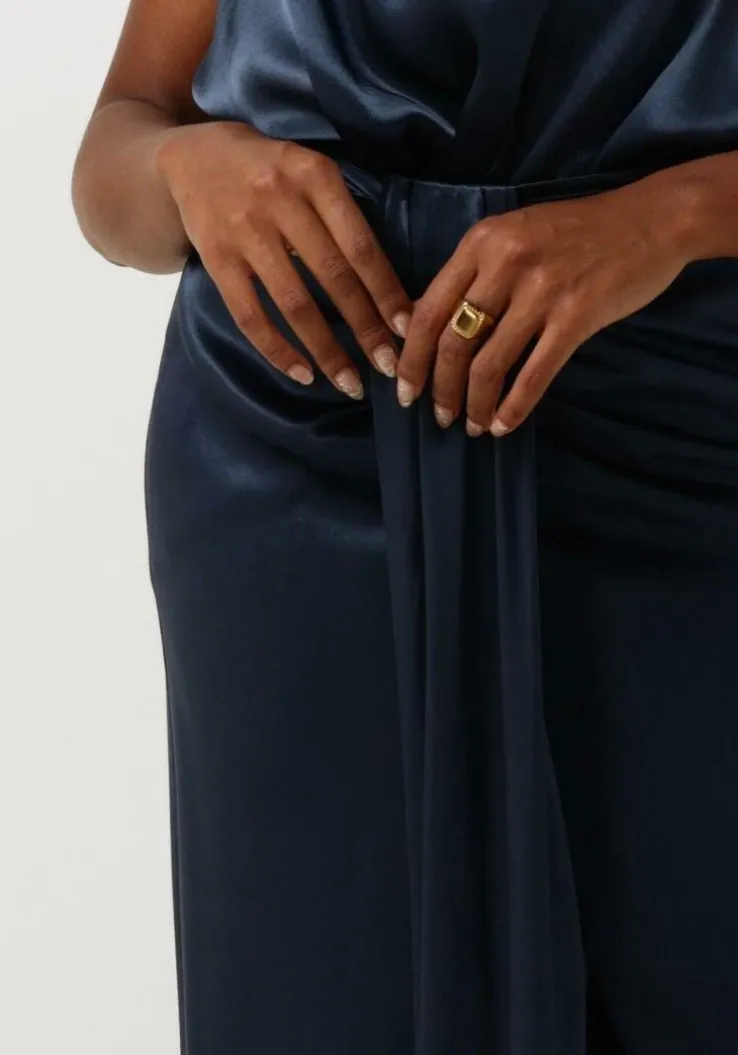 Met de 120012 midirok van GREEK ARCHAIC KORI straal je stijl en klasse uit. Deze donkerblauwe rok is gemaakt van satijn, waardoor hij een luxueuze uitstraling heeft. De half lange rok heeft een split aan de voorzijde, voor een speels effect. Combineer deze rok met een mooie blouse voor een chique look, of draag hem met een casual T-shirt voor een meer ontspannen uitstraling. Of je nu naar een feestje gaat of een dagje uit met vriendinnen, deze rok is perfect voor elke gelegenheid. Voel je zelfverzekerd en vrouwelijk in deze prachtige rok.