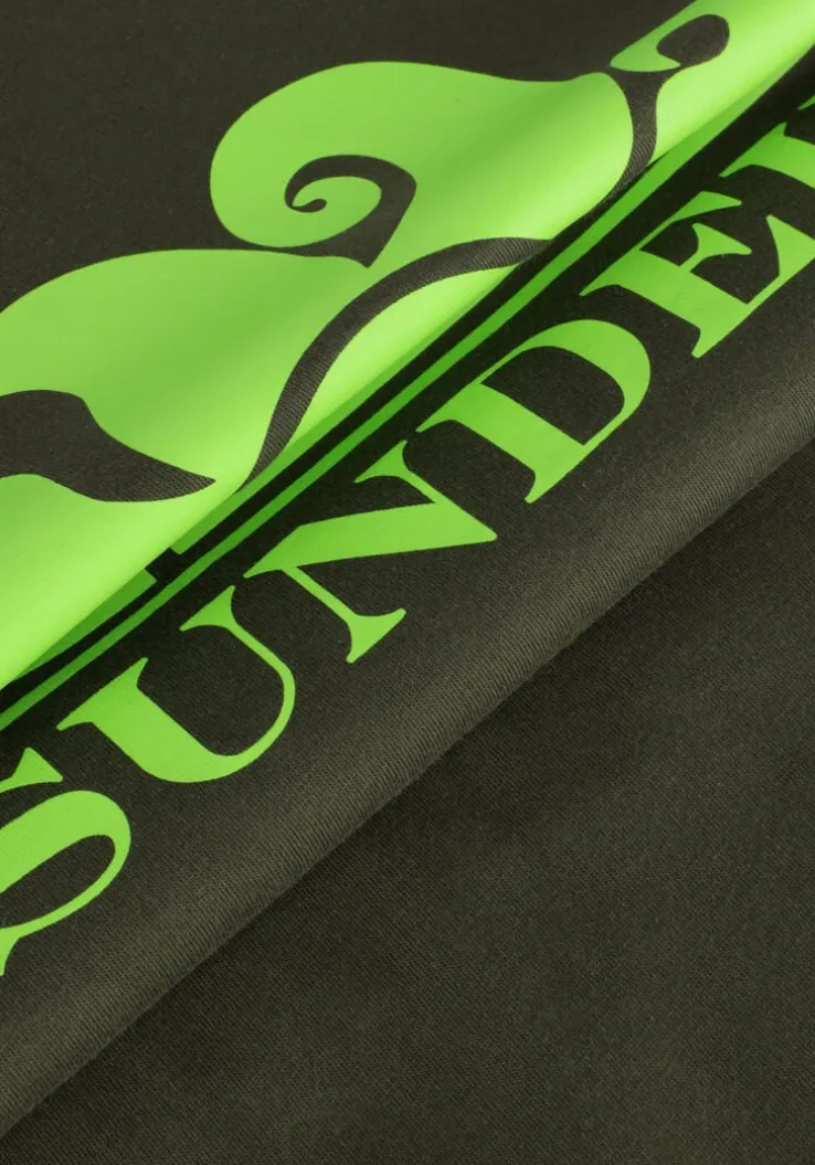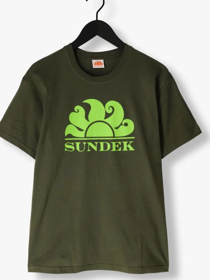 Met het SUNDEK M4S100 NEW SIMEON LOGO T-shirt in de kleur donkergroen ben je helemaal on-trend deze zomer. Dit comfortabele shirt is perfect voor een casual dagje uit of een op avontuur met je vrienden. Combineer het met een stoere jeans en sneakers voor een relaxte look. Ook staat het shirt goed onder een zomerse short voor een sportieve uitstraling. Met dit T-shirt ben je klaar voor elke gelegenheid!