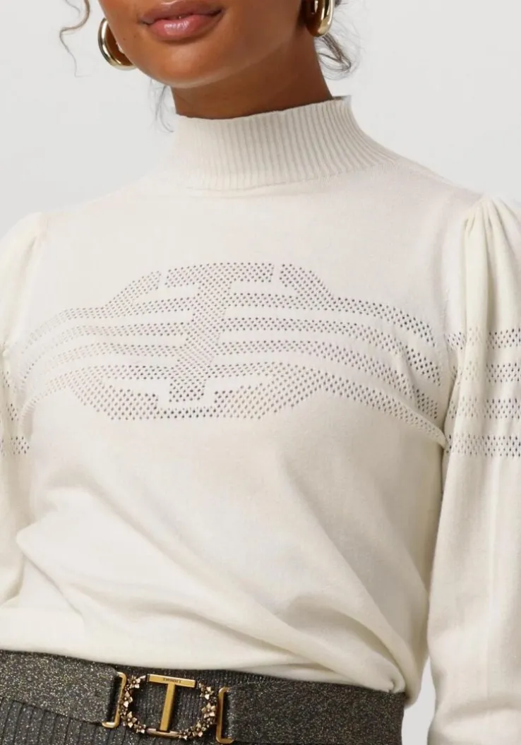 Voel je stijlvol en comfortabel met deze gebroken witte trui van TWINSET MILANO, model 242TP3722. Perfect voor een ontspannen dagje thuis of een gezellige lunch met vriendinnen. Combineer deze trui moeiteloos met een strakke jeans of een elegante rok voor een veelzijdige look. De zachte stof en verfijnde afwerking zorgen voor een luxe uitstraling, terwijl de neutrale kleur makkelijk te matchen is met andere kledingstukken. Voeg een paar stijlvolle laarzen toe en je bent klaar om de dag in stijl te beginnen. Deze trui is een must-have voor elke modebewuste dame.