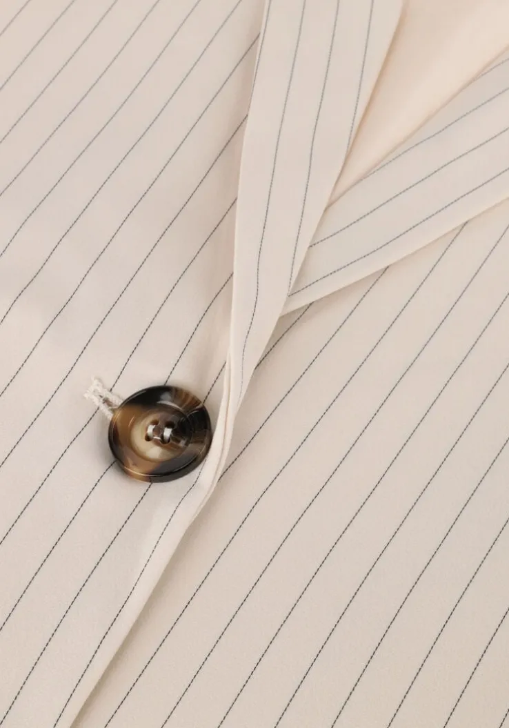 Met de BLAZER ELODY van YDENCE straal je elegantie en stijl uit. Deze gebroken witte blazer is perfect voor elke gelegenheid. Combineer hem met een mooie blouse en een paar chique pumps voor een zakelijke look, of draag hem over een casual T-shirt met jeans voor een trendy outfit. De blazer is een veelzijdig kledingstuk dat niet mag ontbreken in de garderobe van elke moderne dame. Laat jezelf stralen en voel je zelfverzekerd in deze prachtige blazer.