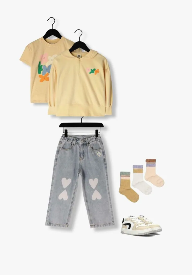 Met de Jelly Mallow FLOWER HALF-ZIP trui ben jij helemaal klaar voor de lente! Deze gele trui van katoen is perfect voor meiden die houden van comfort en stijl. Aan de voor en achterkant zijn er fleurige bloemen afgebeeld. Combineer de trui met een denim rok en witte sneakers voor een trendy look. De zachte katoenen binnenkant zorgt ervoor dat je de hele dag lekker warm blijft. Een must-have voor jouw kledingkast!