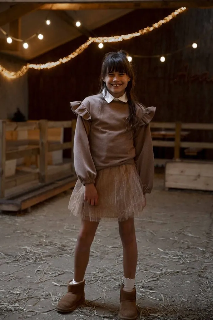 Laat je innerlijke fashionista stralen met de minirok LAURI van AMMEHOELA. Deze sprankelende rok is perfect voor jonge dames die houden van een vleugje glamour in hun garderobe. Combineer de LAURI met een stoer spijkerjasje en een paar coole sneakers voor een casual look, of ga voor een elegante blouse en ballerina’s voor een chique uitstraling. Deze minirok is een veelzijdige must-have die elke outfit een gouden randje geeft.