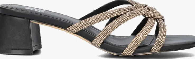 Het Spaanse merk BiBi Lou heeft een toffe collectie van trendy schoenen met een eigenwijze, vrouwelijke en krachtige uitstraling. Schoenen van dit merk zijn niet alleen heel mooi om te zien, maar je kunt er ook nog eens de hele dag op lopen zonder pijn te ervaren. Dit zwarte muiltje 864Z00HG met vierkante neus heeft fijne bandjes van gewatteerd textiel met goudkleurige strass-steentjes en een gevlochten afwerking aan de voorkant. Dit model is gevoerd met soepel en zacht leer en het voetbed is voorzien van een extra leren toplaag met een gewatteerde vulling voor dempend comfort de hele dag door. De lage blokhak van ruim 5 centimeter hoog is met hetzelfde leer bekleed en de rubberen loopzool heeft een goede grip. Waar draag jij ‘m bij?
