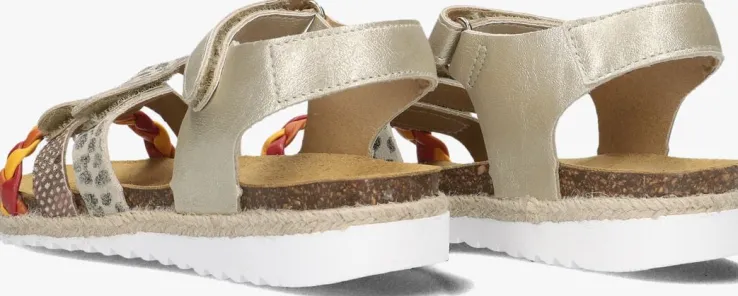 Stap in stijl met deze goudkleurige sandalen van DEVELAB! Met de 44332 ben jij helemaal klaar voor de zomer. De sandaal heeft multi-kleurige klittenband bandjes over de wreef en gevlochten touw bij de zoolrand. De binnenkant is van leer en textiel, geeft je de comfort die je nodig hebt. De witte rubberen zool heeft ene gekarteld profiel en is gripvast. Combineer ze met een luchtige zomerjurk voor een trendy look, of draag ze onder een stoere jeans voor een casual uitstraling. Of je nu naar het strand gaat of een dagje gaat shoppen, met deze sandalen loop jij er altijd fashionable bij. Laat die zon maar komen!
