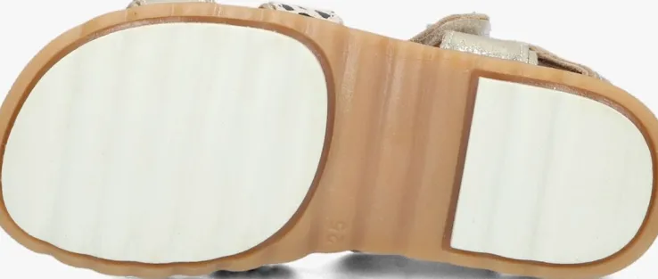Hoera! Het is weer zover, de zon laat zich zien en die voeten hoeven niet meer verstopt te zijn in dichte schoenen. Laat ze maar zien met deze prachtige sandalen SING uit de collectie van het merk JOCHIE & FREAKS. De buitenkant is gemaakt van goudkleurig leer, heeft goudkleurige kwastjes op de wreef en een beige suède bandje met zwarte stippels. Alle drie de bandjes zijn voorzien van klittenband, zodat je ‘m perfect aan de voet aanpast. Voor extra comfort is het hielbandje voorzien van een lichte opvulling en het binnenwerk en voetbed zijn uitgevoerd in leer. Aan het enkelbandje prijkt een subtiel merkreliëf en de zool is gemaakt van rubbermet een gripvast ribbelprofiel. Met deze mooie sandalen ben je helemaal klaar voor al die dagen vol zonneschijn!