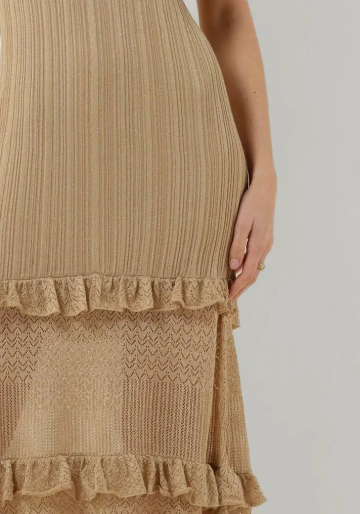 Laat je stralen in deze prachtige ROMANTIC PARTY LUX DRESS van LIU JO! Deze gouden mini jurk is perfect voor een avondje uit of een feestelijke gelegenheid. Combineer de jurk met een paar elegante hakken en een clutch voor een complete look. Deze jurk past goed bij een paar statement oorbellen en een subtiele armband. Voel je zelfverzekerd en stijlvol in deze eyecatcher!