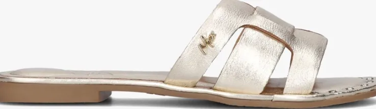 Ga voor comfortabele elegantie! Die twee kenmerken zijn namelijk uitstekend gecombineerd in deze leuke goudkleurige slipper LISA uit de collectie van het merk MEXX.De slippers zijn gemaakt van zwart leer en heeft een band over de voorvoet met uitsnijdingen en een goudkleurig merkembleem. Extra tof zijn de diamantjes aan de voorvoet. De voering is ook gemaakt van leer en onder de hiel zit een merkreliëf. De zool is gemaakt van rubber en heeft een mini hakje van 1,5 centimeter. Trek ze aan onder je zwierige lange jurk voor een superfashionable look!
