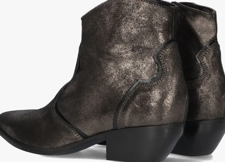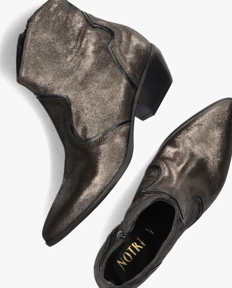 De elegante Italiaanse ontwerpen van het merk NOTRE-V zijn er voor de verfijnde vrouw die er graag effortless chic uit wil zien. De producten zijn gemaakt van luxe materialen met subtiele accenten en een knipoog naar de laatste trends.Dit zwarte enkellaarsjeAR234 heeft een femininuitstraling door de slanke vormgeving en de city-western accenten. Het laarsje is uitgevoerd in zacht leer met goudkleurige glitters en heeft een handigerits aan de binnenzijde voor extra aantrekgemak. Tof aan dit model is de afgeronde schacht, de vormen op de schacht, de puntige neus en de schuine blokhak. Het binnenwerk van zacht en soepel leer voelt comfortabel aan en heeft een vast voetbed. De hak is 5centimeter hoog en de schacht heeft een hoogte van zo’n 13centimeter. Combineer ‘m onder je favoriete jeans of een elegant jurkje voor een fantastische look.