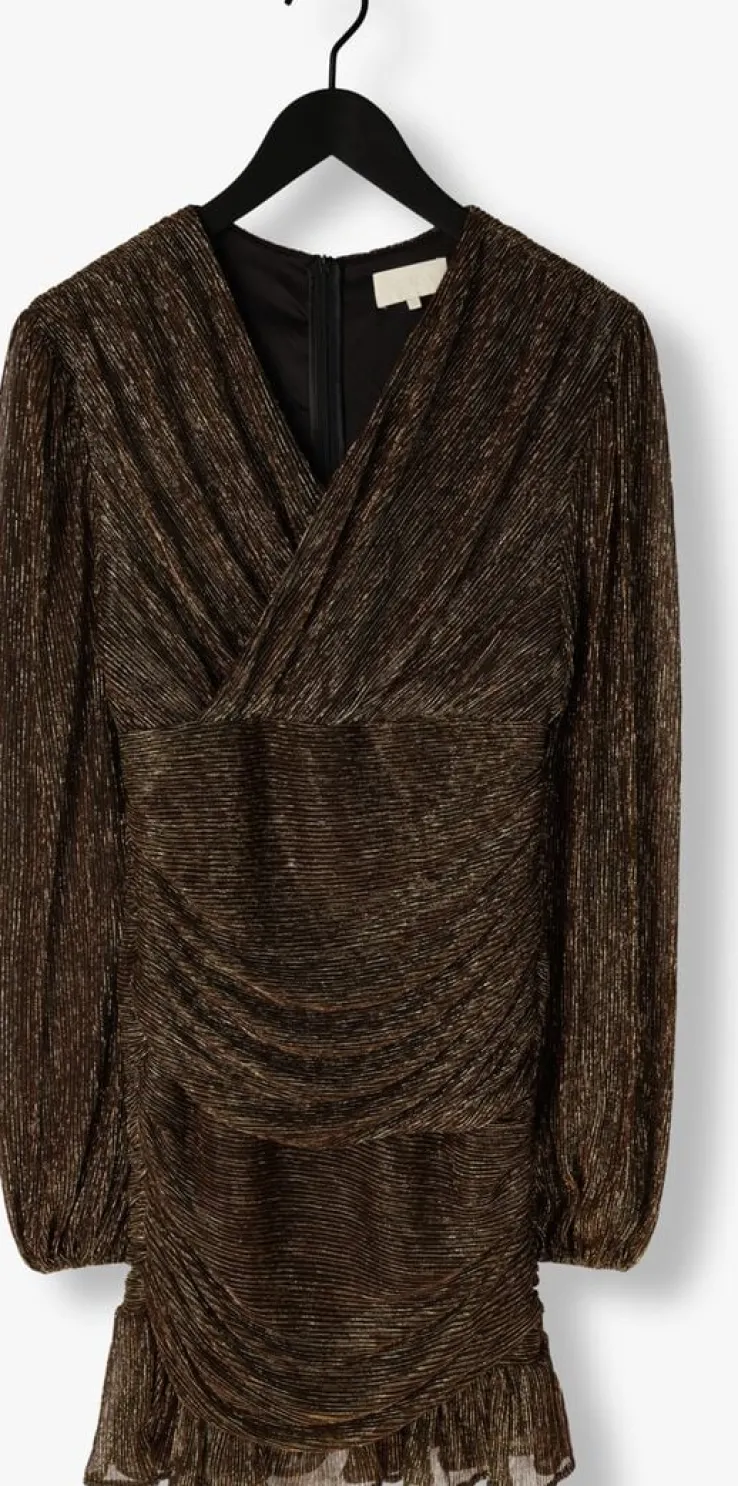 Stralend en stijlvol, de goudkleurige NV-EMILOU jurk van NOTRE-V is een must-have voor elke garderobe. Perfect voor een chique diner of een glamoureuze avond uit. Combineer met een paar elegante hakken en een subtiele clutch voor een complete look. De sprankelende kleur zorgt ervoor dat je opvalt, terwijl de verfijnde snit je figuur prachtig accentueert. Draag deze jurk met een stijlvolle blazer voor een extra touch van klasse. Voel je zelfverzekerd en schitter in elke situatie met deze prachtige jurk.