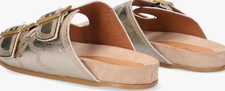Een elegante sandaal is deze zomer onmisbaar in je schoenenkast! Dit metallic goudemodel 10369is van het merk NOTRE-V en is perfect voor je alledaagseoutfits! Deze sandaal heeft twee banden over de wreef die elegant zijn afgewerkt met sierlijke stiksels en ze zijn ook nog eens gemakkelijk aan te passen naar je voet door de gouden gespjes. Het binnenwerk van deze sandaal is afgewerkt met zacht en soepel leer en het voetbed is gemaakt van beige suède. De loopzool is gemaakt vanrubber en is bij de voetbalt 1,5 centimeter hoog en loopt naar achteren toe op tot 2,5 centimeter om de voet extra te ondersteunen. Combineer deze toffe sandaalstijlvol en vrouwelijk met jouw lievelingsjurk of -broek!
