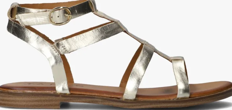 Een elegante sandaal is de perfecte finishingtouchvoor je vrouwelijke, zomerse outfits! Dit goudkleurige modelMILA 34is van het merk TANGO en heeft smalle leren bandjes op de voorvoet en wreef en een smal enkelbandje met verstelbaar gespje. De goudkleurige bolstuds in de zoolrand geeft deze sandaal een stoere touch en een trendy uitstraling. De bandjes zijn gevoerd met leer en dankzij het leren voetbed met dempende schuimvulling loopt dit model heerlijk comfortabel. De rubberen zool heeft een fijn profiel en doordat er gebruik is gemaakt van zeer gripvast rubber ervaar jij een goede stabiliteit. Waar draag jij deze beauty bij?