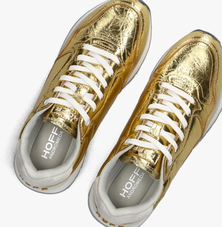 Voeg een vleugje glamour toe aan je dagelijkse look met de goudkleurige ANDROMEDA sneakers van THE HOFF BRAND. Perfect voor een dagje shoppen of een ontspannen wandeling door het park. Deze sneakers stralen luxe uit en combineren moeiteloos met een casual jeans of een stijlvolle midi-rok. De glanzende gouden kleur zorgt ervoor dat je opvalt, terwijl het comfortabele ontwerp je voeten blij houdt. Of je nu kiest voor een relaxte outfit of een meer geklede look, deze sneakers zijn de ideale metgezel. Laat je inspireren door de veelzijdigheid en het comfort van de ANDROMEDA sneakers.