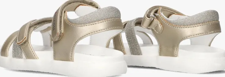 Stap in stijl met deze goudkleurige sandalen van TOMMY HILFIGER. Perfect voor meisjes die willen stralen deze zomer! De sandaal is afgewerkt met merkreliëf en heeft glitterpanelen bij de hiel en voorvoet, is gemakkelijk aan te trekken met de klittenbandsluitingen. Met zijn zacht leatherlook binnenwerk en witte rubberen zool is comfortabel en gripvast. Combineer ze met een zomerjurkje voor een trendy look of draag ze onder een jeans voor een casual uitstraling. Met deze sandalen ben je klaar voor elke gelegenheid, van een dagje strand tot een avondje uit. Laat je voeten schitteren en geniet van het comfort en de kwaliteit die deze schoenen bieden. Maak je outfit compleet met deze eyecatchers en steel de show waar je ook gaat!