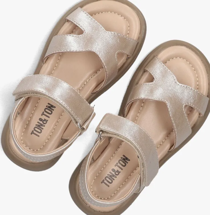 Laat je stralen met de gouden SILYA sandalen van TON & TON. Deze platte sandalen met een ronde neus zijn perfect voor avontuurlijke meisjes die stijlvol willen zijn. Gemaakt van een glanzende leatherlook, zowel aan de binnen- als buitenkant, bieden ze comfort en flair. De handige klittenbandsluiting zorgt voor een gemakkelijke pasvorm, ideaal voor een dagje in het park of een zomerse picknick. De stevige rubberen zool geeft grip en stabiliteit. Combineer ze met een luchtige zomerjurk of een stoere short voor een complete look. Deze sandalen zijn de perfecte mix van speels en chic.