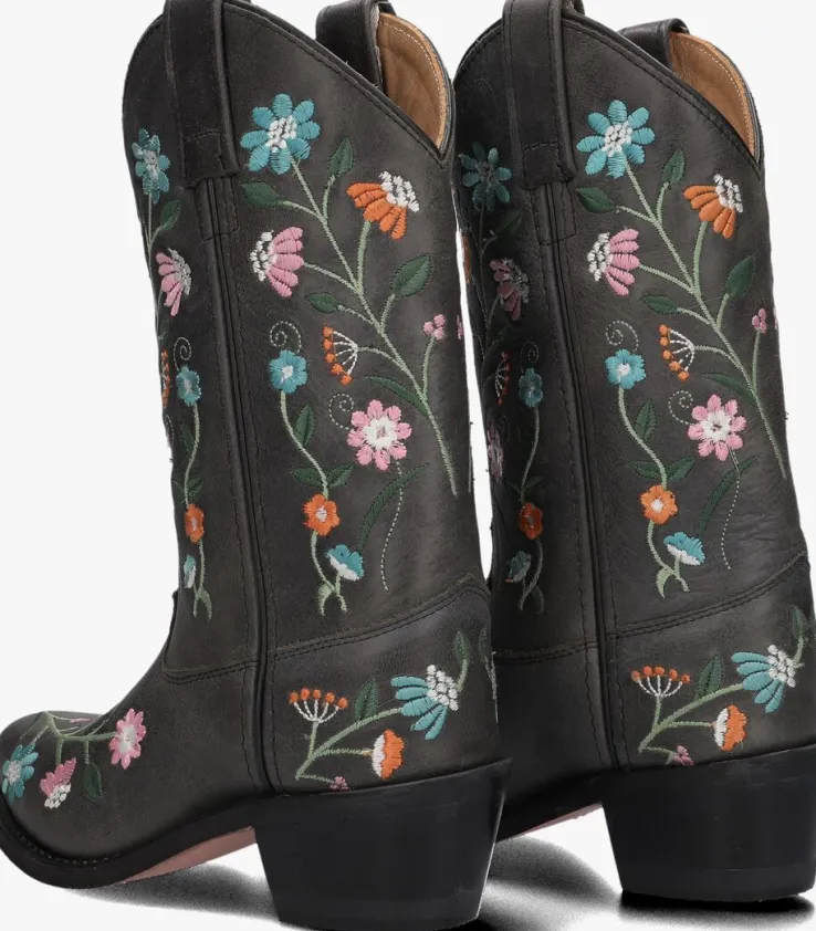 Stap stijlvol het najaar in met de WINTER BOUQUET cowboylaarzen van BOOTSTOCK. Deze grijze leren laarzen met een schachthoogte van 30 cm en een comfortabele blokhak van 3 cm zijn perfect voor avontuurlijke dames. Extra opvallend zijn de kleurrijke bloemetjes. Combineer ze met een denim rokje en een oversized trui voor een trendy city western uitstraling. Of draag ze onder een jurkje met een leren jasje voor een speelse, maar toch stoere outfit. Ideaal voor een dagje shoppen in de stad of een gezellige lunch met vriendinnen.
