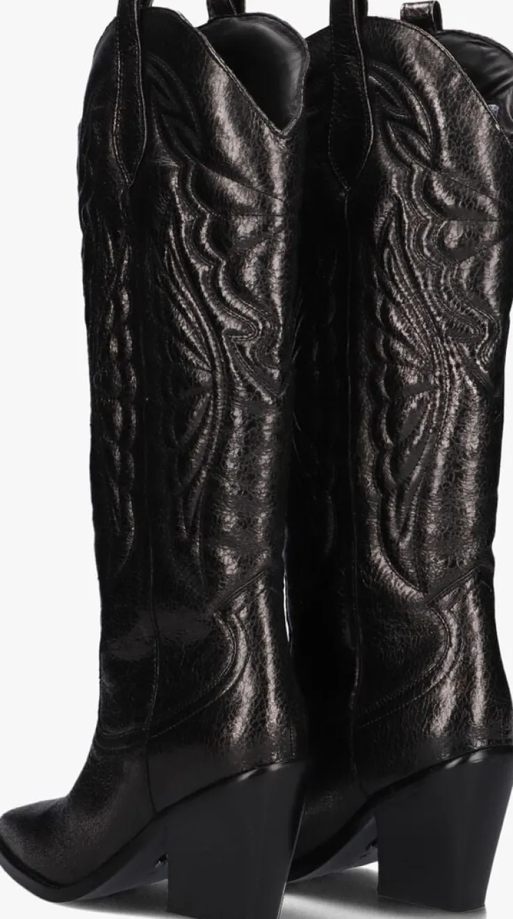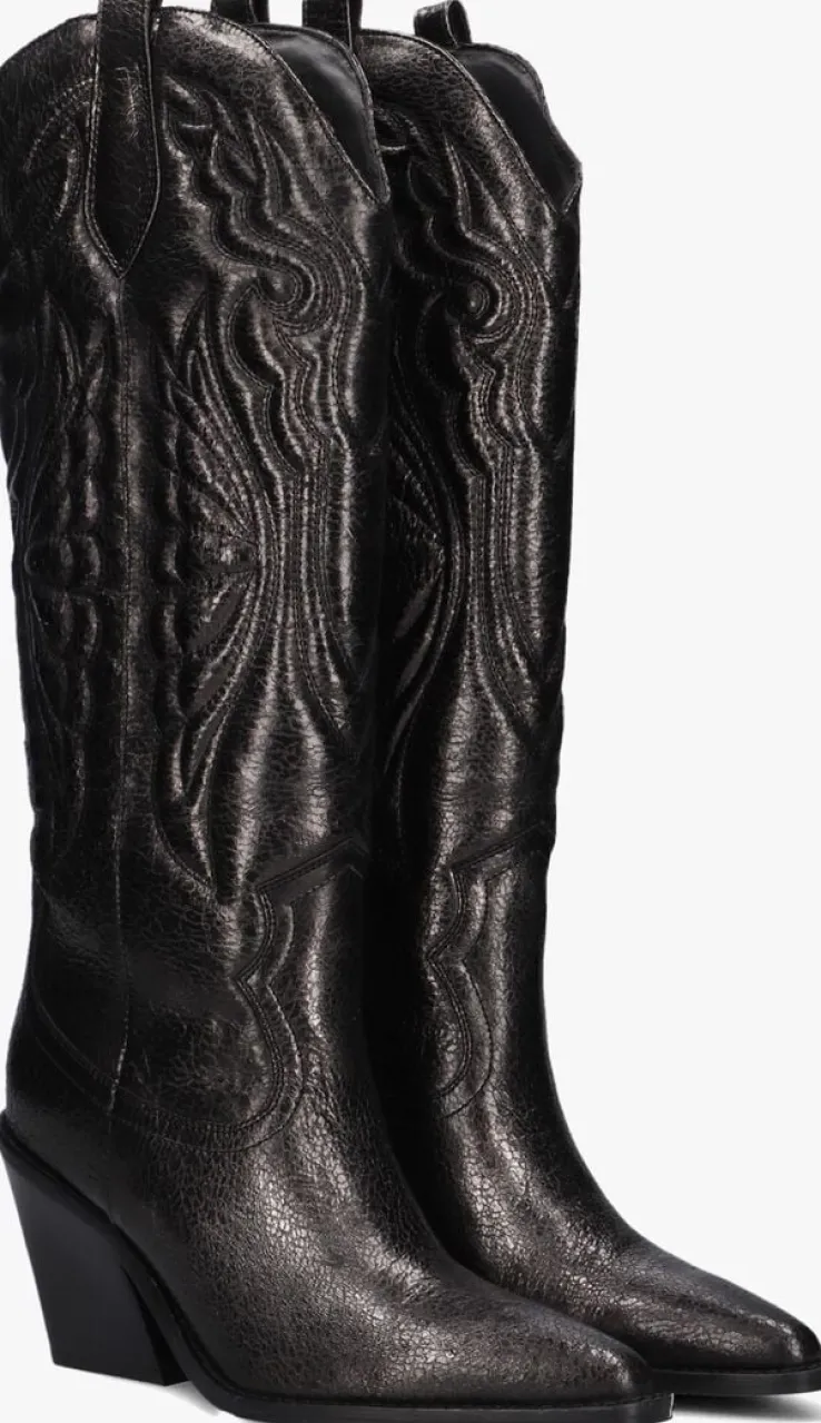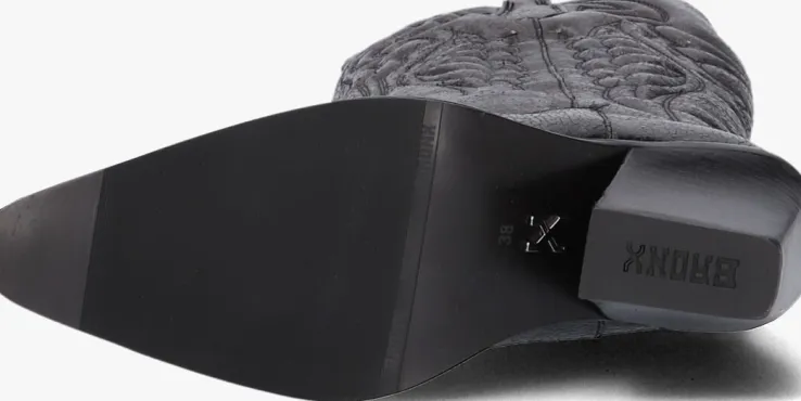 Ga voor een opvallende, stoere look met deze grijze lange laars NEW-KOLE 14177met toffecowboy-look van het merkBRONX!Deze glanzendecowboylaars heefteen afgeronde schacht met aantreklussen en is voorzien van gewatteerde vlammenpanelen en versieringen op de geheleschacht. Daarnaast heeft de laars eenspitse neus eneen stevige, schuin aflopende westernhak. Het bovenwerk is uitgevoerd in hoogwaardig leer en de binnenvoering is van zacht leer met een vast voetbed. De rubberen zool geeft de laars een goede grip en de gelaagde hakheeft een hoogte van ruim 9centimeter. Deschacht is 37centimeter hoog en heeft een kuitwijdte van 35 centimeter, gemeten ter hoogte van de kuit. Draag ze ultra feminin met eenrok of jurk of superstoer onder een jeans!