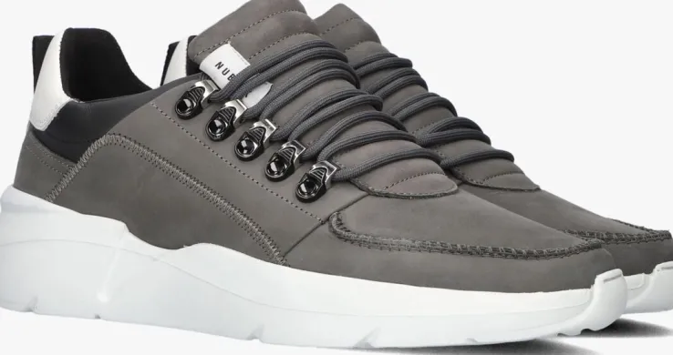 Deze té gekke, grijze sneaker ROQUE ROMAN MEN van het vooruitstrevende fashionmerk NUBIKK is echt een stoere sneaker. Dit lichtgewicht model is uitgevoerd in nubuckleer met panelen van zwart en wit leer. De schoen heeft unieke NUBIKK-elementen, zoals de chunky EVA-zool, de verschillende merkopdrukken en de grove stiksels. De binnenkant is gemaakt van leer en de sneaker heeft een leer, uitneembaar voetbed. De schoen heeft een uniek uiterlijk dankzij de textieltape aantreklus en de grove veteroogjes. De witte ‘blown-up’ zool van rubber heeft speelse vormen, is licht van gewicht en heeft een gripvast profiel. Draag deze sneaker sportief onder een jeans of combineer ‘m met een comfy joggingbroek.