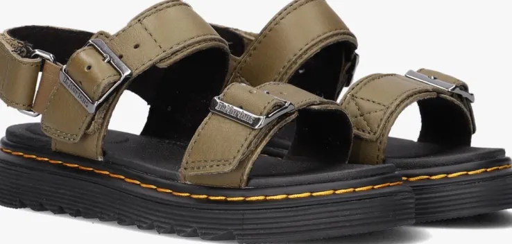 Een klassiek sandaaltjemet een karaktervolle, stoere Dr. Martens-stempel, dat is deze groene sandaalKYLE K. Dittoffe item is gemaakt van klassiek, gewaxt anilineleer ‘Americanstyle’, een wasachtig volnerfleer met een lichte glans en een stoer karakter.Het binnenwerk is van leer met een rubberenSoftWairâ„¢-voetbed met dempend karakter. De sandaal heefteen aantalkenmerkende Dr. Martens accenten zoals de gegroefde zoolrand en de ultrastevige Goodyear-zoolrand met geel stiksel. Hij kangemakkelijk passend aan de voet worden gemaakt door de dubbele gespsluiting op de wreef en je trekt hem eenvoudig aan en uit met de klittenbandsluiting op de hiel. Deze sandaal steunt op een dikke, maar superlichte zool van 2 centimeter onder de voorvoet en loopt naar achteren toe op tot 2,5centimeter dik. Met deze sandaal ben je klaar om de wereld te gaan verkennen.
