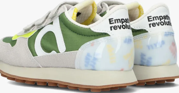 Van deze lage sneakers CALMA KID BOYS uit de collectie van het duurzame en trendy sneakermerk DUOO word je meteen helemaal vrolijk. De sneakers van dit merk worden ontworpen in Barcelona en zijn diervriendelijk en PETA approved vegan. Dit model bewijst ook gelijk dat vegan schoenen niet saai hoeven te zijn, zo heeft hij een gecombineerd bovenwerk van groen ruitjes textiel met een witte tong, panelen van lichtgrijs vegan suèdelook en opvallende gele en neongroene kleuraccenten over het gehele bovenwerk. Opvallend is de semitransparante hielinzet van lak met meerdere vrolijke teksten en de witte hielcap van vegan lederlook met de opdruk; “emathy revolution”. Leuk detail is het rubberen merklabel op de tong, het merkembleem op de zijkant en de driedubbele klittenbandsluiting, waarmee je dit model in een handomdraai aan en uit trekt. De voering is gemaakt van zacht textiel met een vast, dempend voetbed. De rubberen loopzool is afgewerkt met een gripvast noppenprofiel voor onwijs veel grip tijdens het rennen, spelen en klauwteren. Waar combineer jij deze vrolijke sneakers bij?