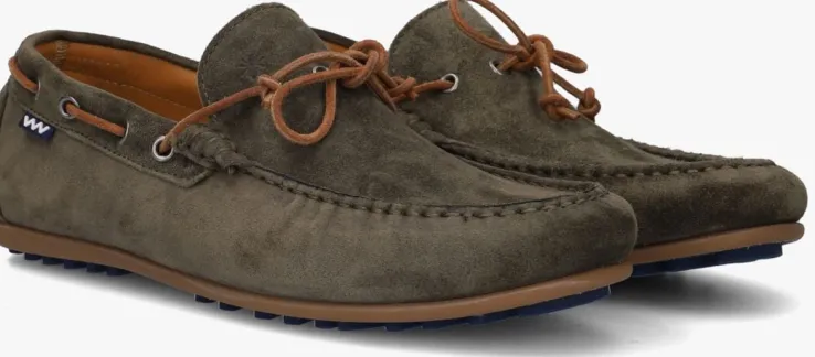 Uit de collectie van het Nederlandse merk Floris van Bommel is deze groene mocassin SFM-40009 met stijlvolle look en stoere zool. Deze lage schoen heeft een bovenwerk van suède met een gestanste ruitjesprint, opgestikte neusnaad en op de hiel bevinden zich drie rubberen inzetten waarvan één gesierd is met een subtiele F in reliëf.De schoen heeft een bruine, suède veterdecoratie op de wreef die, zoals het hoort bij een mocassin, rondom de enkelkraag verder loopt door metalen veterringen. Het binnenwerk is gemaakt van leer met een vast voetbed dat gesierd is met een opvallende print van mieren. De rubberen loopzool heeft niet alleen een zeer grof en supergripvast profiel, maar zorgt ook voor comfort en een goede afwikkeling van de voet.