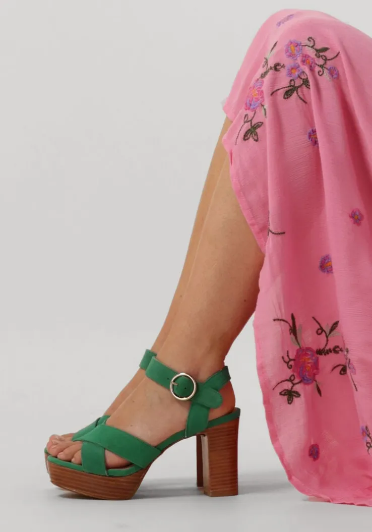 Deze toffe sandalen MALOU 3 komen uit de collectie van het merk GOOSECRAFT. Dit groene exemplaar van suède heeft over de voorvoet twee gekruiste banden en het enkelbandje is voorzien van een metalen gespsluiting, zodat de sandaal goed om je voet blijft zitten tijdens het lopen. Met deze sandaal laat jij je vrouwelijke en stoere look zien, dit komt door de slanke vormgeving, de hoge blokhak, het plateau onder de voorvoet en het mooie enkelbandje. De bandjes zijn gevoerd met soepel leer en de zool is afgewerkt met een leren toplaag en bevat een fijne demping, zodat jij het lang kunt volhouden op deze beauty’s. De houtlook zool heeft een hakhoogte van ruim 10 centimeter en het plateau onder de voorvoet is 3,5 centimeter hoog. Draag ‘m onder een prachtige jurk of leuke skinny, want met deze sandalen kan je de plank niet misslaan!