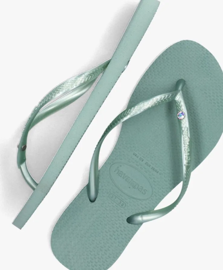 Het meest iconische model van het Braziliaanse merk HAVAIANAS in een vrouwelijk jasje; dat is deze zomerse SLIM CRYSTAL SW II slipper. Dit groene exemplaar heeft dunne bandjes met reliëf merkopdruk en maakt hem extra vrouwelijk door het strass steentje voor een extra feminin look. De slipper is comfortabel, duurzaam, lichtgewicht, anti-slip, hittebestendig én waterresistant. Wat wil je nog meer? Dat de zon schijnt en je ze de hele dag kan dragen natuurlijk!