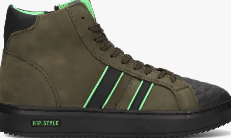 Wil jij hip voor de dag komen? Ga dan voor deze mooie hoge sneaker in een stoere groene kleur. Dit model  H1943 is van het merk Hip en is aan de buitenkant gemaakt van nubuck. Opvallend zijn de neongroen en zwarte details en het leren hielstuk. De binnenkant is gevoerd met leer en heeft een uitneembaar voetbed. De neus heeft een speels 3D reliëf van zwart rubber. De veters hoef je maar één keer te strikken want je trekt ze gemakkelijk aan dankzij de ritssluiting. De rubberen zool heeft een gripvaste profiel en zorgt voor een goede grip en stabiliteit.