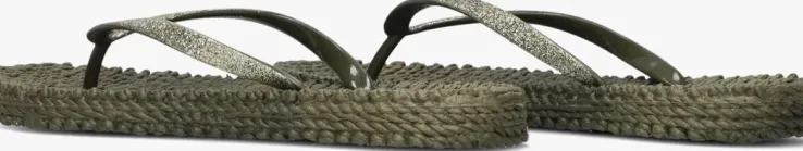 Bij het zien van deze beauty’s loop je in gedachten op de boulevard, kijkend naar zon, zee en strand. Klinkt goed toch? Dit legergroenemodel CHEERFUL01 van Ilse Jacobsen is dé perfecte slipper voor zomerse avonturen! Hij heeft een unieke look door de rubberen zool met geweven look en de fijne wreefbandjesmet glitters.Door de superflexibele zool en het gripvaste profiel loopt deze slipper uitzonderlijk comfortabel!