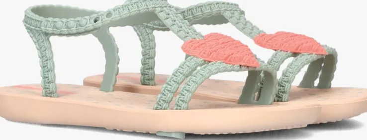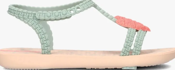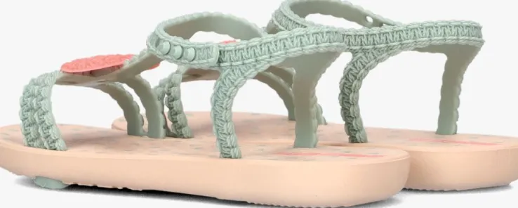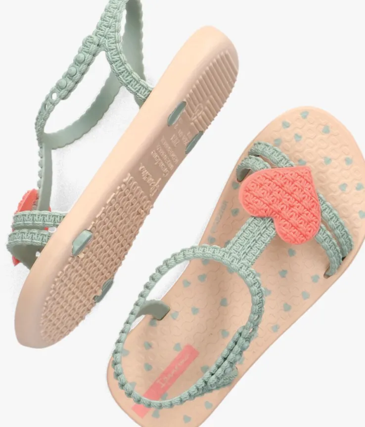 Hoe leuk zijn deze groene sandaaltjes MY FIRST IPANEMAME van het bekende merk IPANEMA. Dit model is 100% vegan en100% recyclebaar. Het bovenwerk heeft een gevlochten patroon met twee bandjes over de voorvoet, een verticaal bandje over de wreef en een smal enkelbandje met verstelbare druksluiting. Het roze, rubberen hartje bij de voorvoet maakt dit model extra tof! Het beige voetbed heeft een subtiel reliëf, een merkembleem onder de hiel en all-over groene hartjes. De loopzool is voorzien van een gripvast profiel en voorkomt uitglijden. Dit sandaaltje is in de zomer altijd een goede optie!