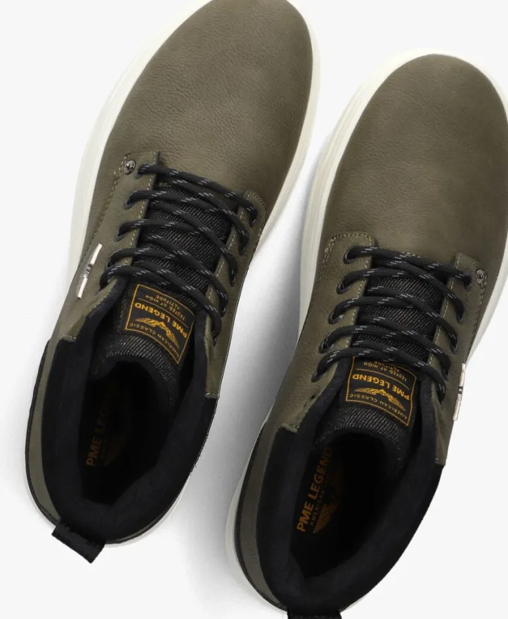 Maak kennis met de LEXING-T hoge sneakers voor heren. Deze groene sneakers van PME LEGEND combineren stijl en comfort. Deze sneakers zijn gemaakt van groen leer in combinatie met details van zwart suéde en leatherlook. De binnenvoering is gemaakt van zacht materiaal en heeft een uitneembaar voetbed. De rubberen zool zorgt voor een stevige grip, ideaal voor een wandeling door de stad of een casual dag op kantoor. De ronde neus en vetersluiting geven een moderne twist aan je outfit. Combineer deze sneakers met een stoere jeans en een casual shirt voor een complete look.