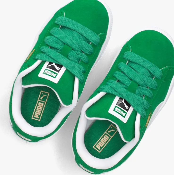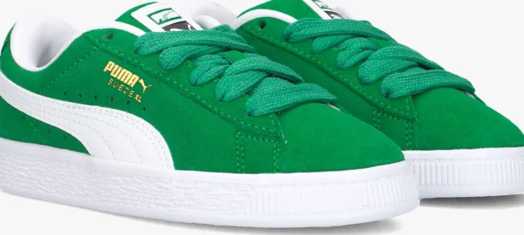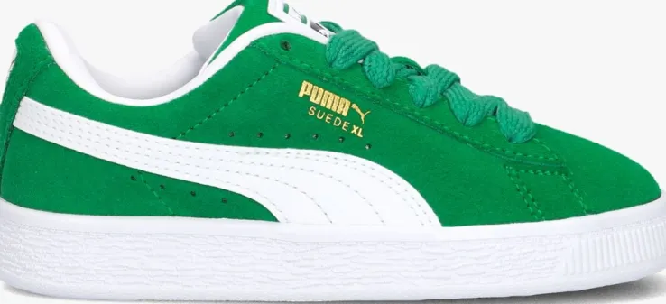 Maak kennis met de SUEDE XL JR lage sneakers van PUMA. Deze groene sneakers zijn perfect voor jongens die houden van stijl en comfort. De sneaker heeft een bovenwerk van groen suède met aan de zijkanten het Puma logo en bekende witte streep. De kleine perforaties en merkemblemen geven een stoere touch. De binnenkant is van leahterlook en heeft een zacht uitneembaar voetbed. Draag ze tijdens een potje voetbal op het plein of een middagje chillen met vrienden. De suède afwerking geeft een luxe uitstraling, terwijl de stevige zool zorgt voor optimale grip en ondersteuning. Met de sneakers worden een wit paar extra veters meegeleverd, zo creëer je eigen look. Combineer ze met een stoere jeans en een casual T-shirt voor een coole, alledaagse look. Of draag ze onder een sportieve joggingbroek voor een relaxte vibe. Met deze sneakers aan je voeten ben je altijd klaar voor actie!