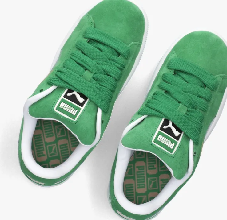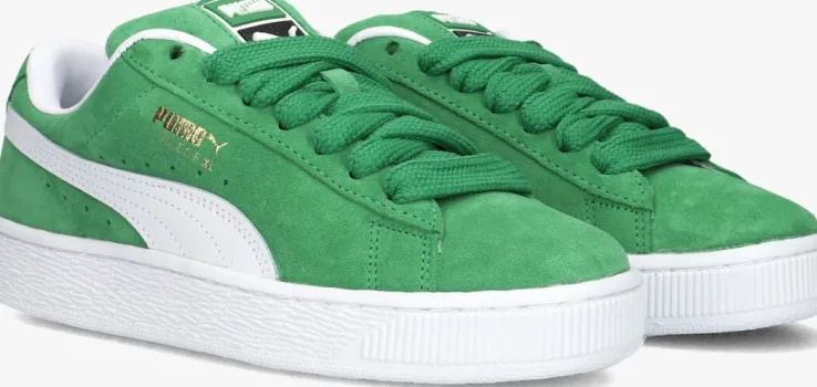 Maak kennis met de SUEDE XL JR lage sneakers van PUMA. Deze groene sneakers zijn perfect voor jongens die houden van stijl en comfort. De sneaker heeft een bovenwerk van groen suède met aan de zijkanten het Puma logo en bekende witte streep. De kleine perforaties en merkemblemen geven een stoere touch. De binnenkant is van leahterlook en heeft een zacht uitneembaar voetbed. Draag ze tijdens een potje voetbal op het plein of een middagje chillen met vrienden. De suède afwerking geeft een luxe uitstraling, terwijl de stevige zool zorgt voor optimale grip en ondersteuning. Met de sneakers worden een wit paar extra veters meegeleverd, zo creëer je eigen look. Combineer ze met een stoere jeans en een casual T-shirt voor een coole, alledaagse look. Of draag ze onder een sportieve joggingbroek voor een relaxte vibe. Met deze sneakers aan je voeten ben je altijd klaar voor actie!