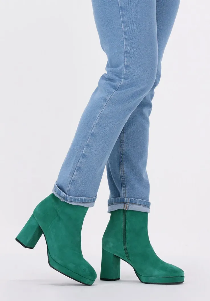Ook dit seizoen loop je er trendy bij op deze enkel laars 78236, van Red-Rag. De laarzen zijn gemaakt van groene suède met een naar binnen gestikte neusnaad, een plateau van bijna 2 centimeter onder de voorvoet en een stoere blokhak van 9 centimeter hoog die ook bekleed is met suède. Trek ze gemakkelijk aan en uit met de ritssluiting aan de binnenzijde van de laars. Het binnenwerk is gemaakt van leer met een vast dempend voetbed en de rubberen loopzool beschikt over een fijn profiel voor veel grip. Deze variant is eindeloos te combineren onder al je favoriete outfits, probeer eens een mooie jurk of lekker casual onder een jeans.