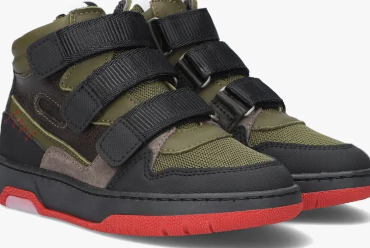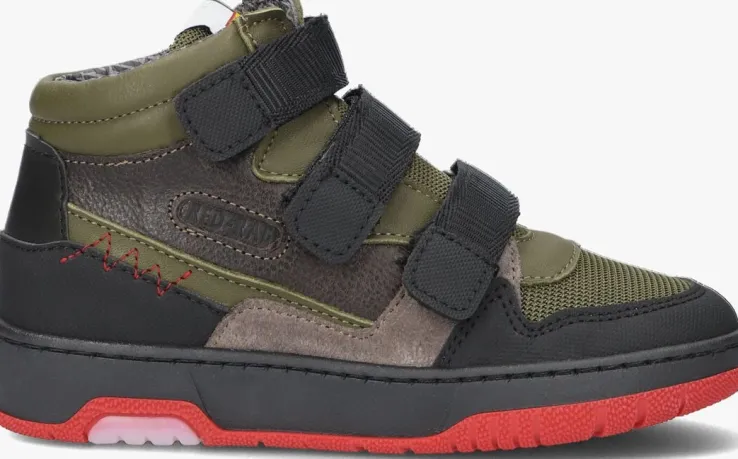 Deze opvallende sneaker 13627 komt uit de schoenencollectie van het merk RED-RAG. Dit hoge model is gemaakt van groen en zwart leer met een suède paneel en heeft een rubberen neusrand en hielstabilisator. De neus en tong zijn van groen mesh gemaakt. De sneaker trek je gemakkelijk aan en uit door het klittenband van textiel op de bovenzijde. Een leuk detail is het gele merkembleem op de tong, het rode stiksel en het merkembleem op de zijkant. De binnenkant is gemaakt van grijs leer met merkopdrukken en heeft een zacht uitneembaar voetbed. De rubberen zool heeft een rode loopzool en geeft voldoende grip en stabiliteit.
