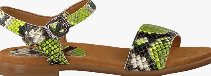 Laat de zon maar stralen want met deze gele sandalen LIRITA van het merk Unisa ben jij er helemaal klaar voor! Het bovenwerk is gemaakt van geel lederlook met slangenprint en een zilverkleurige glitterfinishen heeft een brede band over de voet en smalle bandjes met een gespsluiting om de enkel. Het voetbed is uitgevoerd in suèdelook en voelt heerlijk zacht aan. De rubberen zool met mini hakje en fijn profiel zorgt voor veel grip en flexibiliteit.