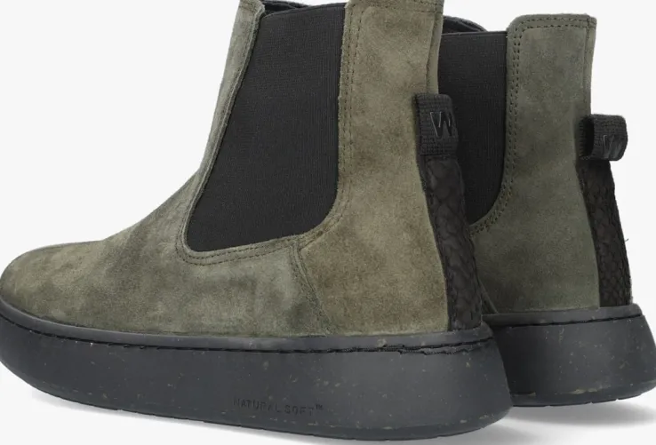 Elegante fashionable chelsea bootHANNAH van het Scandinavische merk WODEN. Schoenen van dit duurzame merk wordengemaakt met respect voor de wereld envan natuurlijke materialen zoals kurk, gerecycled rubber en visleer uit de Noordzee. Dit legergroenemodel heeft een bovenwerk van suède met elastische zijpanelen en een handige aantreklus van textiel in combinatie met visleer en merkopdruk op de schacht. De schoen heeft een uitneembaar, schokabsorberend kurken voetbed voor extra comfort. De binnenvoering bestaat uit ten minste 50% gerecycled polyester en de flexibele, lichtgewicht zool van natuurrubber is vermengd met 10% gerecycled rubber. Combineer hem onder talloze outfits voor een stoere look.